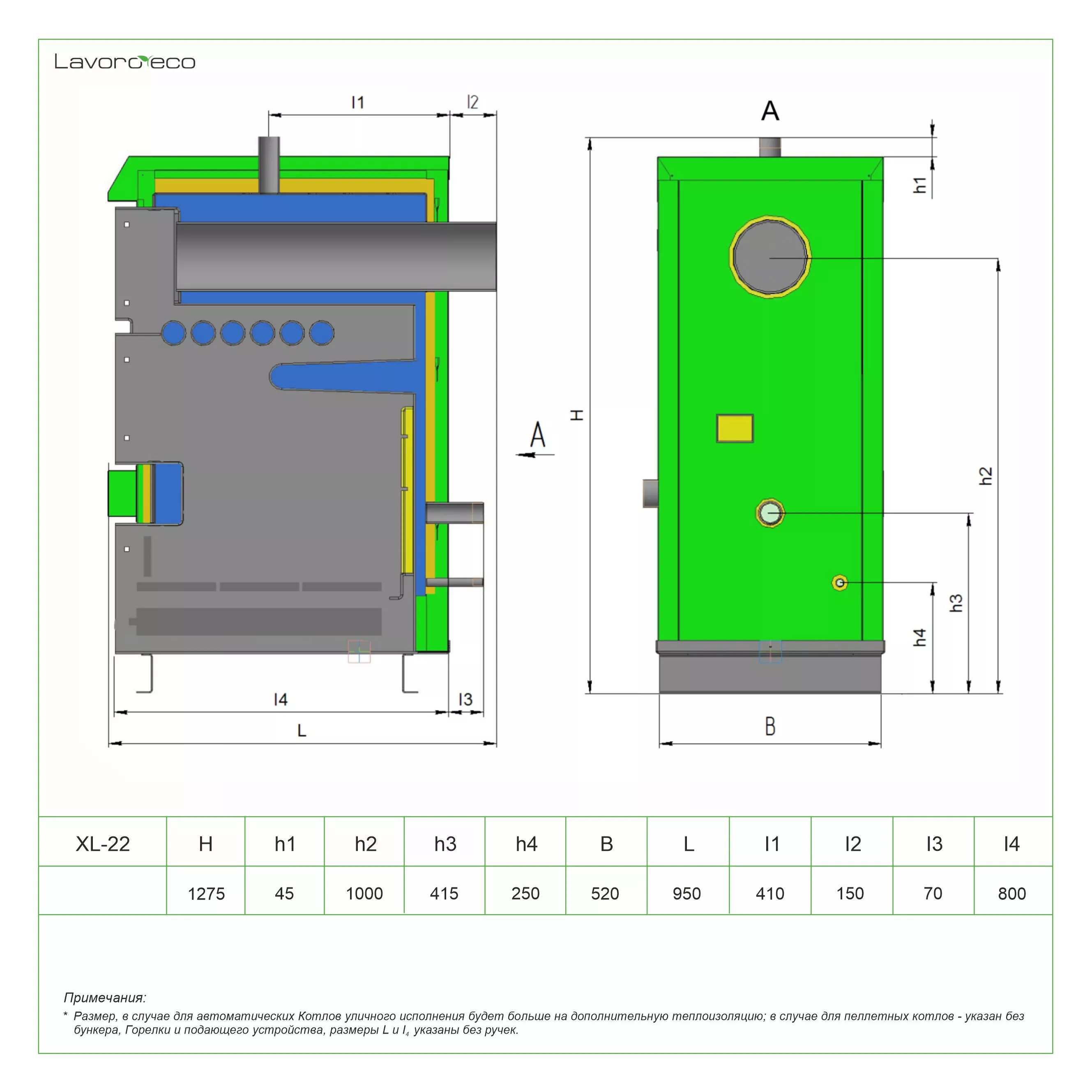 Котел Lavoro серии XL - это современный стальной водогрейный котел, работающий в полуавтоматическом режиме, предназначен для отопления жилых и производственных помещений, а также для приготовления горячей воды (ГВС). В качестве топлива используется древесина, уголь, различные виды топливных брикетов и пеллеты (опция).
