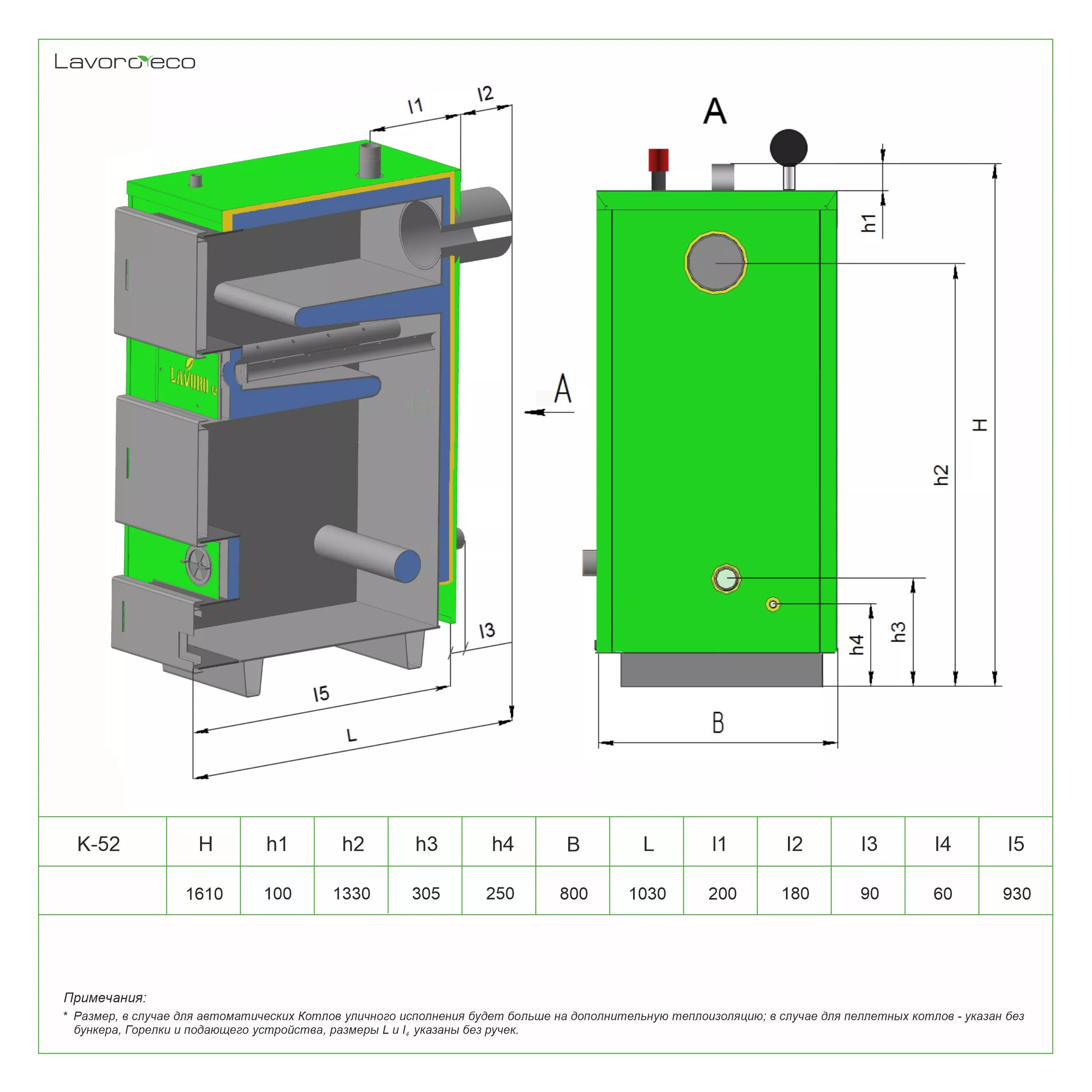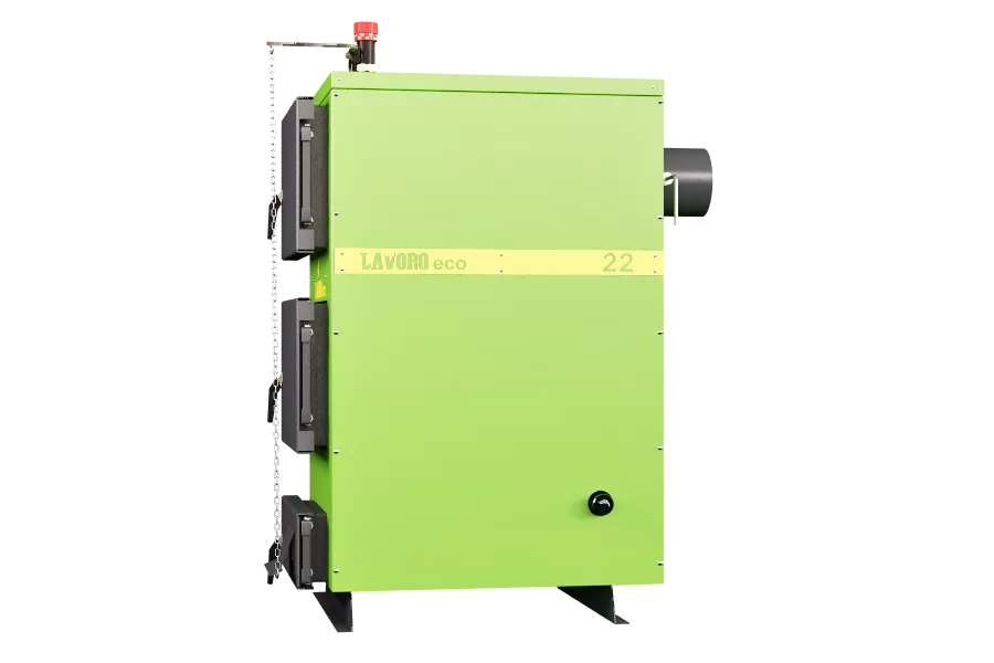 Котел Lavoro ECO серии K это стальной водогрейный котел c дожигом пиролизного газа, предназначен для отопления помещений, оборудованных системами водяного отопления с естественной или принудительной циркуляцией, и горячего водоснабжения (ГВС). Основным видом топлива данных котлов являются дрова и различные виды топливных брикетов, резервный вид топлива - уголь. Сталь топки 09Г2С, толщиной от 5 мм.