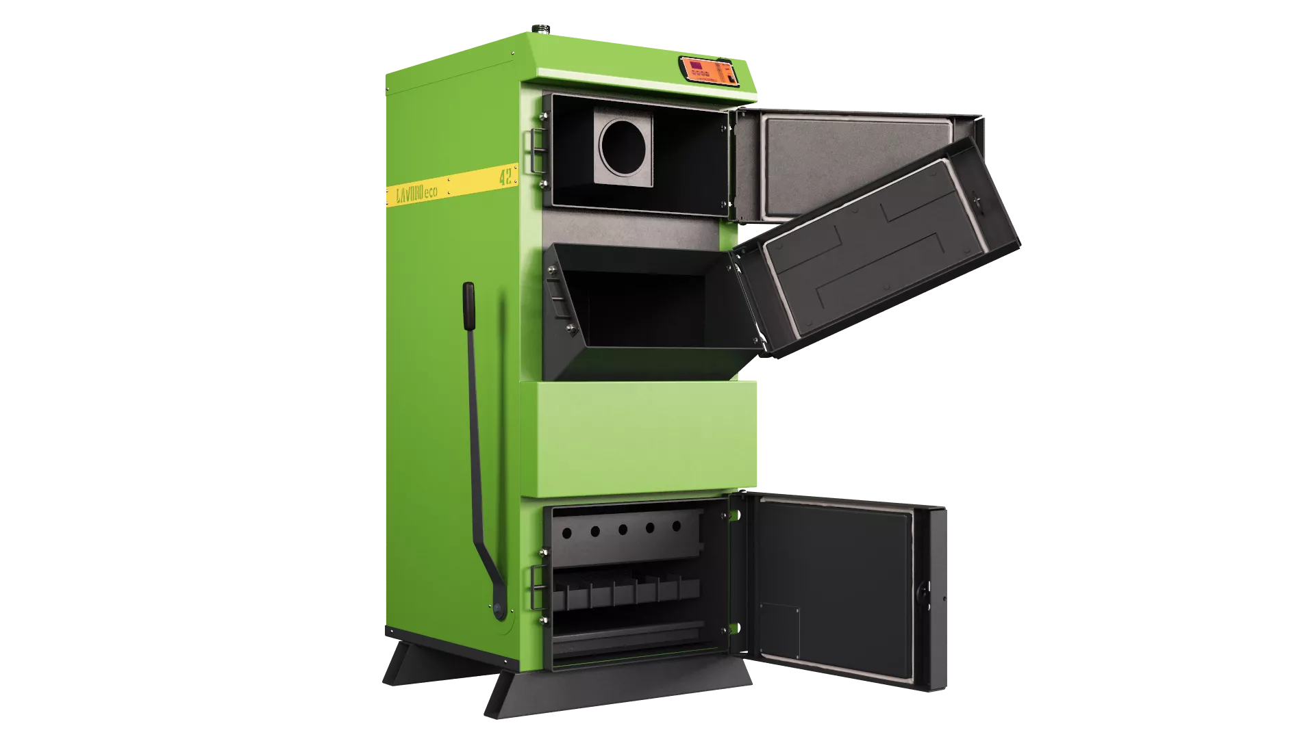 Котел Lavoro Carbone серии LC - это современный стальной водогрейный котел, работающий в полуавтоматическом режиме, предназначен для отопления жилых и производственных помещений, а также для приготовления горячей воды (ГВС). В качестве топлива используется уголь, древесина, различные виды топливных брикетов. Возможна комплектация пеллетной факельной горелкой. Основным отличием угольных котлов данной серии является возможность использовать в качестве основного топлива уголь; водонаполенные колосники из цельнотянутый жаропрочной толстостенной трубы; ворошилка уникальной и безотказной конструкции, которая помогает пользователю очищать поверхность колосников от шлака.
