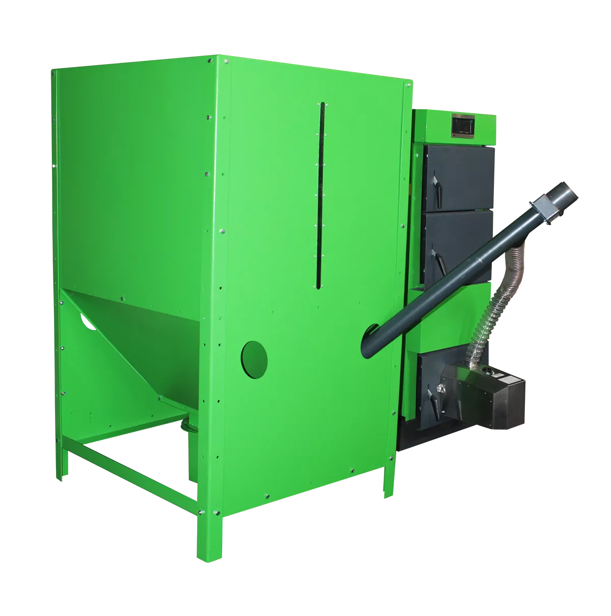 Поступающее в горелку топливо должно храниться в герметичном, закрытом контейнере, и должно транспортироваться с помощью подающего устройства со спиральным вкладышем, соответствующей длины и мощности.