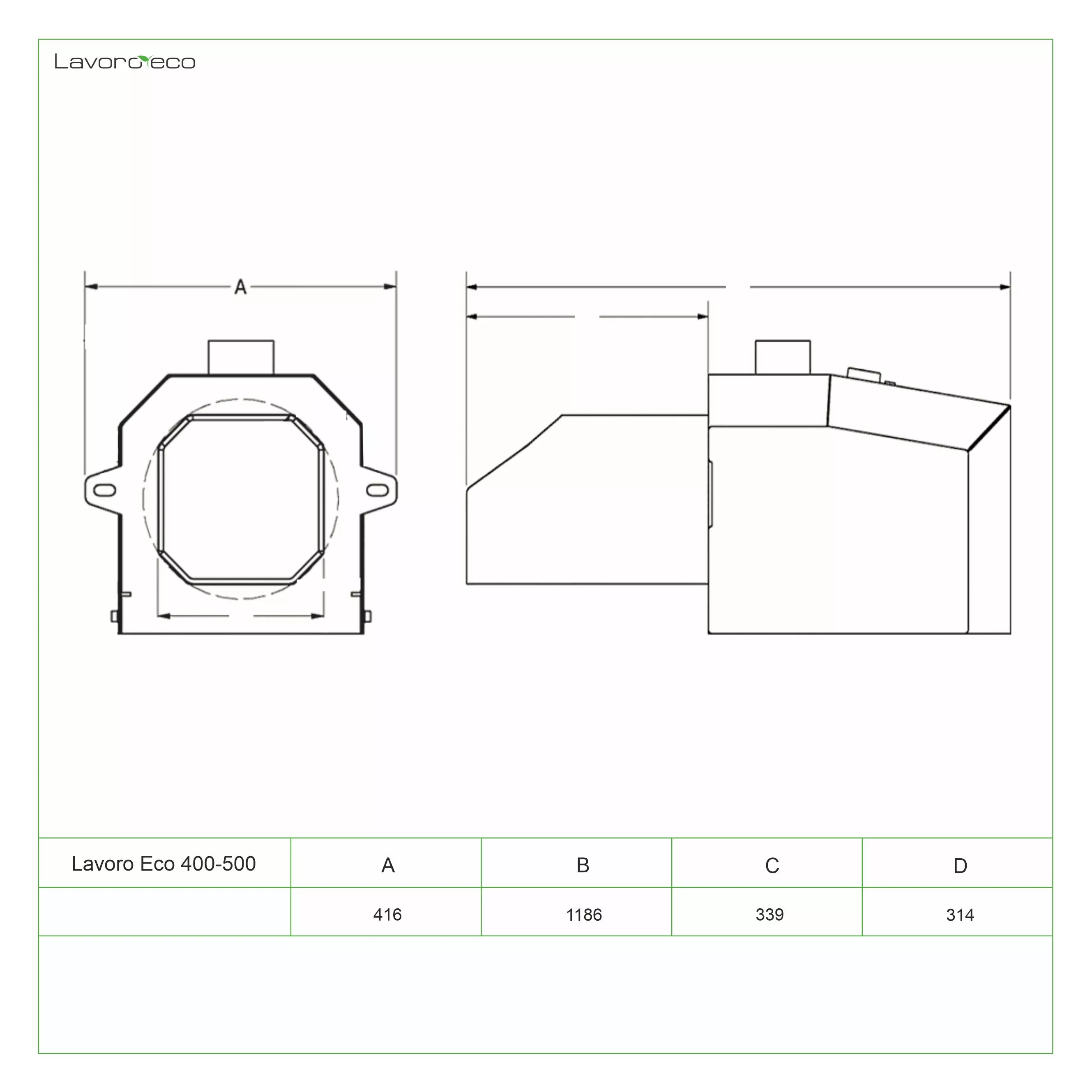 В пиролизном котле «Lavoro eco» не происходит прямого сгорания топлива, поэтому топка имеет небольшие размеры, что в итоге сказывается на размерах самого котла - они значительно меньше обычных твердотопливных.