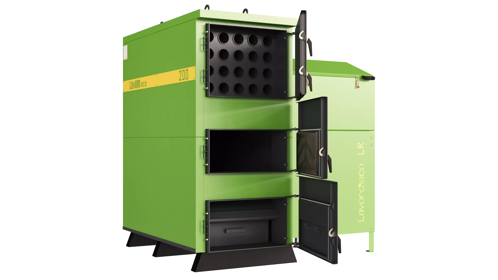 Пеллетный котел Lavoro ECO 200 серии LR - это современный стальной водогрейный котел, работающий в полностью автоматическом режиме, предназначенный для отопления жилых и производственных помещений, а также для нагрева хозяйственной воды (ГВС). В котел встроена современная ретортная чугунная пеллетная горелка, котел оснащен бункером со шнеком.