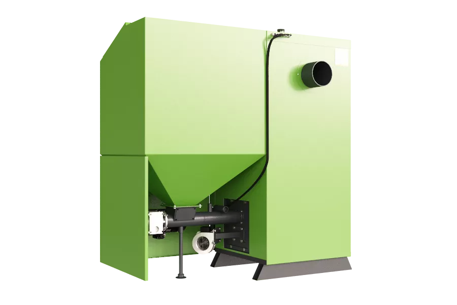 Поступающее в горелку топливо должно храниться в герметичном, закрытом контейнере, и должно транспортировать с помощью подающего устройства со спиральным вкладышем, соответствующей длины и мощности.