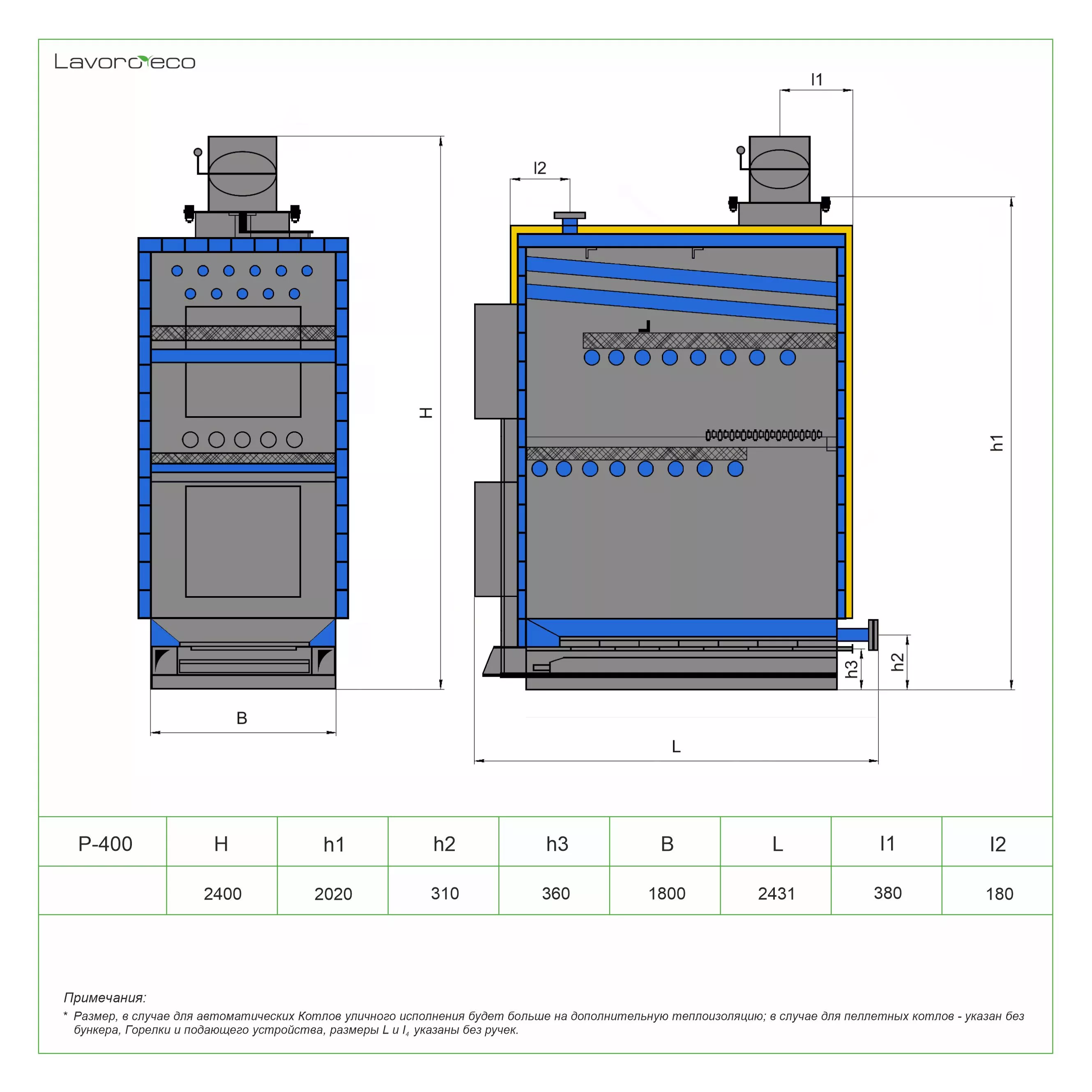 Котел Lavoro PRO это современный стальной водогрейный котел, предназначен для отопления помещений, оборудованных системами водяного отопления с естественной или принудительной циркуляцией, и горячего водоснабжения (ГВС), с рабочим давлением до 0,45 МПа и максимальной температурой на выходе из котла до 95ºС. Котел Lavoro PRO работает на различных видах твердого топлива, а именно на дровах, топливных брикетах, угле, торфяных брикетах.