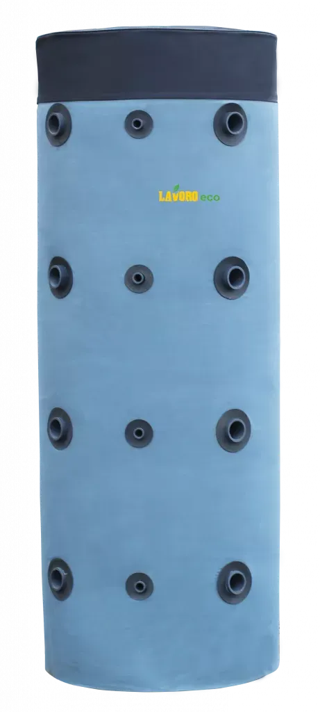 Бак теплоаккумулятор Lavoro (буферная емкость, бак-аккумулятор) предназначен для накопления и сохранения избытков тепловой энергии от различных источников тепла. Если Вам необходима совместная работа нескольких источников тепла: твердотопливного котла и электрического котла; газового котла и дровяного котла; теплового насоса, твердотопливного котла и электрического котла, то теплоаккумулятор поможет решить эту задачу и, кроме этого, станет важным элементом системы отопления, так как увеличит срок службы стального теплообменника, увеличит период между закладками топлива в твердотопливный котел, а также повысит безопасность системы отопления в целом.