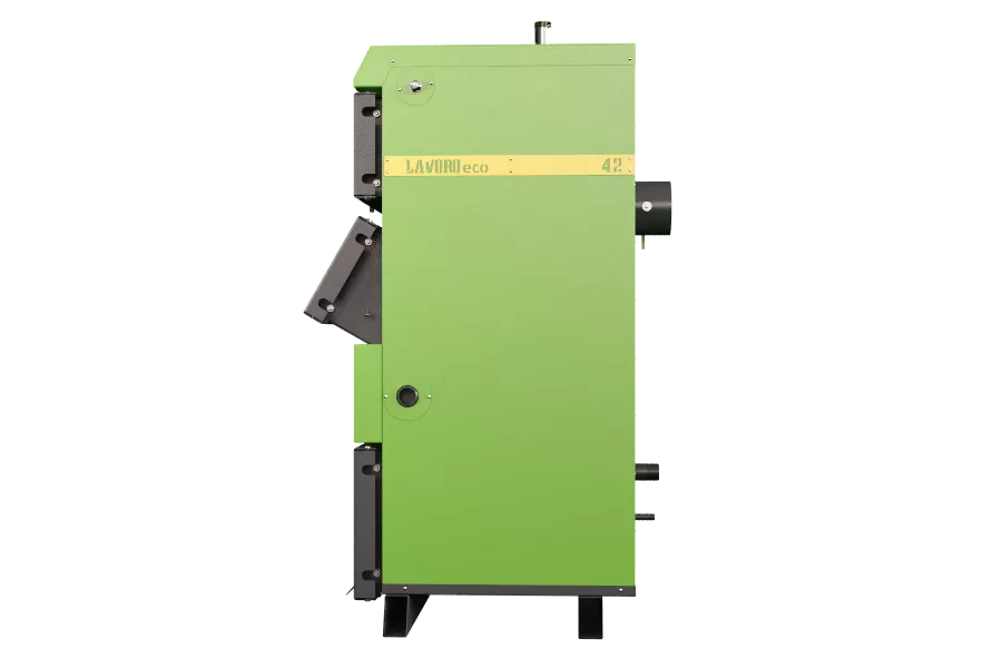 В пиролизном котле «Lavoro eco» не происходит прямого сгорания топлива, поэтому топка имеет небольшие размеры, что в итоге сказывается на размерах самого котла - они значительно меньше обычных твердотопливных.